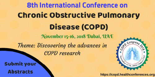 ME Conferences invites all the participants from all over the world to attend 8th International Conference on Chronic Obstructive Pulmonary Disease (COPD) during November 15-16,2018 at Dubai, UAE. This meeting deals with the advanced research technologies in the field of pulmonology and also about the new treatment approaches which are formulated by scientists to treat numerous diseases in easier method which includes encouraging keynote presentation, Oral speech, Poster presentations, Exhibitions.